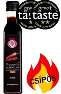 Ekskluzywny, w 100% naturalny olej uzyskiwany z nasion węgierskiej papryki przyprawowej (ostrej), tłoczony na zimno. Produkowany w regionie Szeged – słynącym z najwyższej jakości papryki – zachwyca intensywnym, głębokim kolorem oraz wyrazistym, pikantnym smakiem.