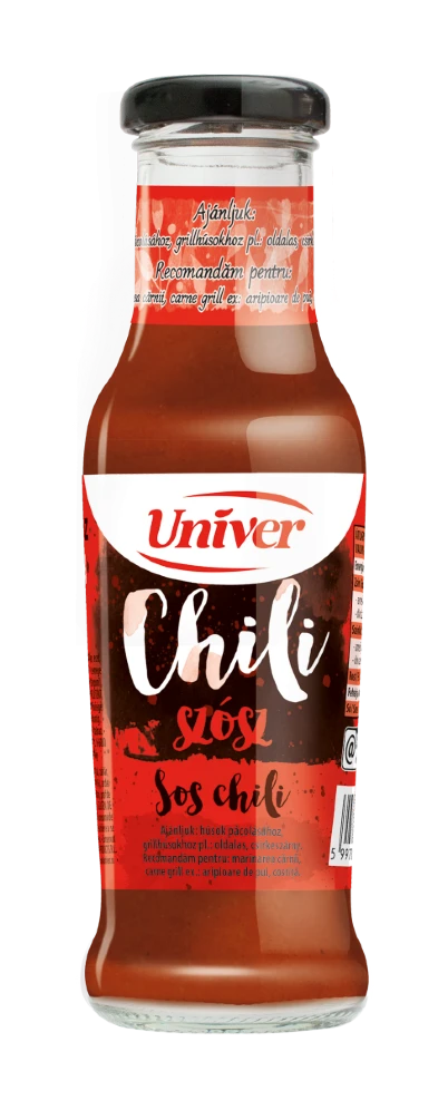 Univer Sos Chili 265 g to wyrazisty, pikantny sos o lekko słodkim profilu, który świetnie sprawdza się do marynowania mięs oraz jako dodatek do dań z grilla. Pasuje między innymi do żeberek, skrzydełek z kurczaka, pieczonych mięs i przekąsek serwowanych na ciepło. Produkt nie zawiera konserwantów i został utrwalony termicznie.